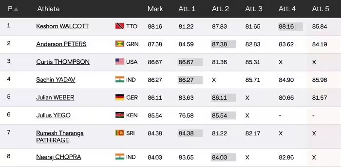 His performance was marked by visible frustration, particularly after his third attempt, which resulted in a foul. He was unable to replicate his qualifying form, and his best throw in the final was a disappointing 84.03m. This performance ultimately placed him in eighth position, a stark contrast to his usual dominance.