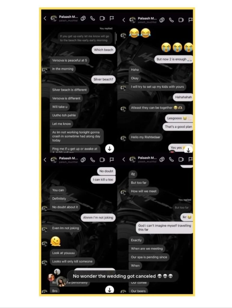 - Palash exchanged flirty messages with a woman named Mary D’Costa, reportedly connected to their pre-wedding choreography.